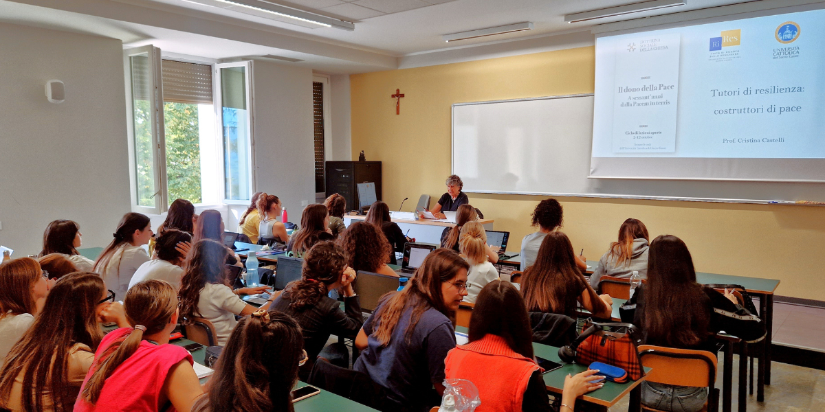 Dal 2 al 12 ottobre 2023, in tutte le sedi dell’Università Cattolica del Sacro Cuore (Milano, Brescia, Piacenza-Cremona, Roma), si è svolto un ciclo di diciotto lezioni aperte nell’ambito dell’iniziativa “Il dono della pace. A sessant’anni dalla Pacem in terris”. L’evento ha coinvolto numerosissimi studenti delle diverse facoltà, poiché la pace è l’“anelito profondo degli esseri umani di tutti i tempi” (Pacem in terris, 1). Sul sito del Centro, a questo indirizzo, abbiamo condiviso il materiale disponibile relativo agli incontri con gli studenti.