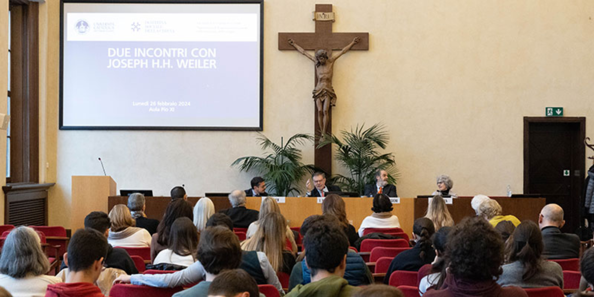 Lunedì 26 febbraio 2024 il giurista Joseph H.H. Weiler, professore alla New York University School of Law, ha tenuto due seminari presso l’Università Cattolica del Sacro Cuore di Milano. Nella prima relazione ha affrontato il tema del “processo a Gesù”, mentre nel secondo incontro ha approfondito il “ruolo delle fedi e delle religioni nello spazio pubblico nazionale e internazionale”. Sul sito di Cattolica News sono disponibili l’articolo relativo all’iniziativa e la video-intervista a Weiler.