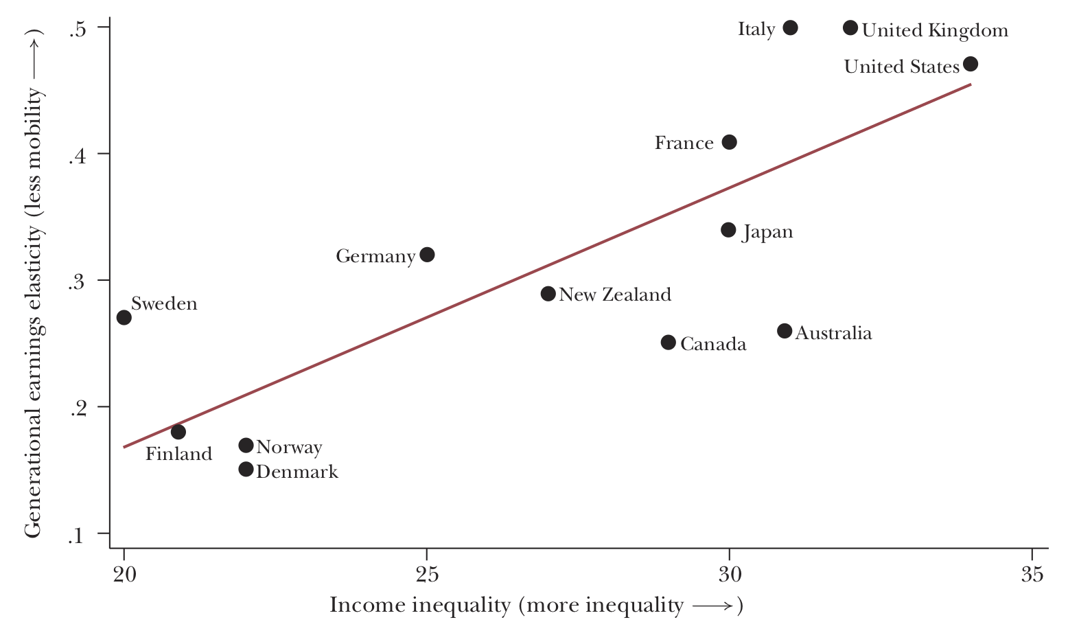 Queste considerazioni suggeriscono che un modo alternativo per interrogarsi circa le implicazioni etiche della disuguaglianza è quello di guardare alla mobilità intergenerazionale dei redditi (o di altre misure rilevanti dal punto di vista socio-economico) definibile come grado di indipendenza degli esiti individuali dalle origini sociali. Una elevata dipendenza del successo socio-economico degli individui dalle condizioni sociali della famiglia di origine è sintomo di limitata uguaglianza di opportunità e suggerisce che la disuguaglianza dei redditi rappresenta un problema di equità sociale, e per questo richiede adeguati interventi di politica economica.