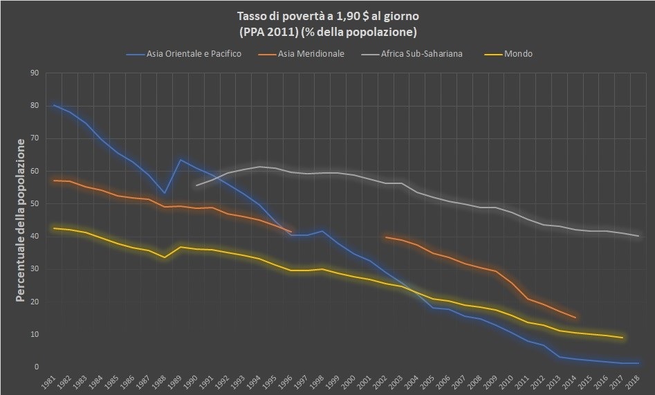(Elaborazione sulla base di dati World Development Indicators. Indicatore: Poverty headcount ratio at $1.90 a day – 2011 PPP – % of population)