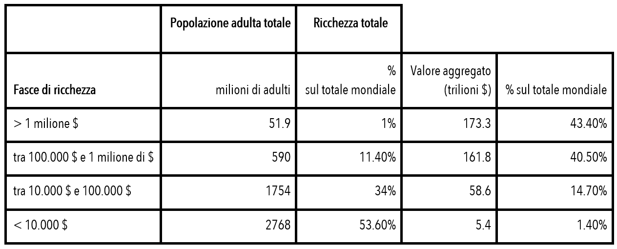 Tabella 1 - Ripartizione della ricchezza mondiale tra la popolazione adulta alla fine del 2019