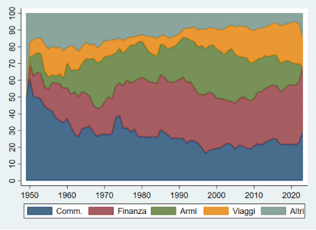 La figura 2 mostra che queste rappresentano circa il 60% della tipologia di sanzioni adottate. In particolare, mentre negli anni ’50 le sanzioni economiche erano prevalentemente di carattere commerciale, con la globalizzazione e lo sviluppo della finanza l’importanza relativa delle sanzioni finanziarie è notevolmente cresciuta.