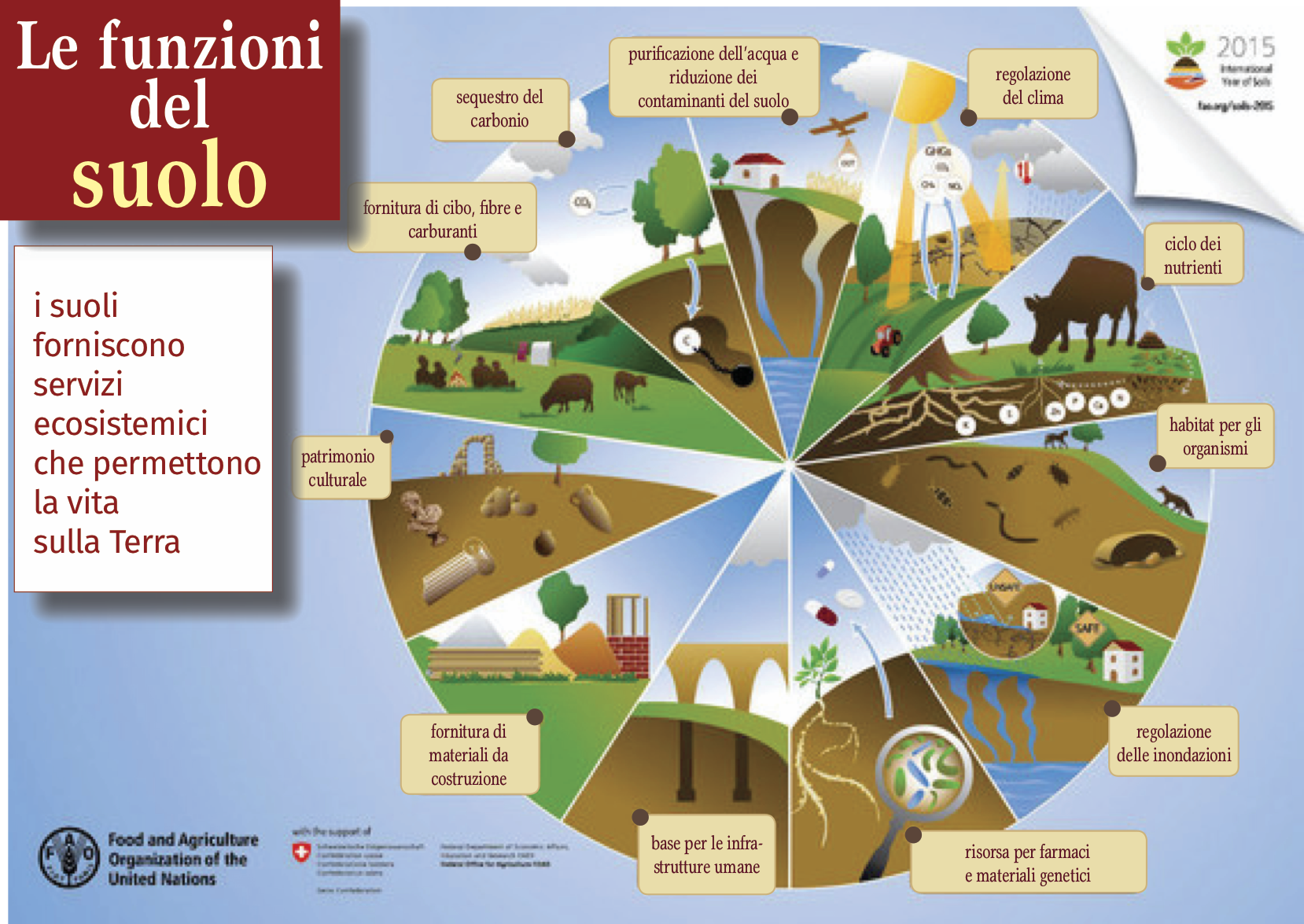 Il suolo è la “risorsa naturale sottostante” il terreno (Commissione Europea 2021, 9). Oltre a consentire la produzione di alimenti, i suoli sani ospitano il 25% dell’intera biodiversità e sono “il più grande deposito di carbonio del pianeta. Questa caratteristica, insieme alla capacità di assorbire acqua […] e ridurre il rischio di allagamenti e siccità”, nonché all’attitudine ad ospitare la vegetazione, fa del suolo “un alleato indispensabile […] per la mitigazione e l’adattamento ai cambiamenti climatici” (ivi, 1).
