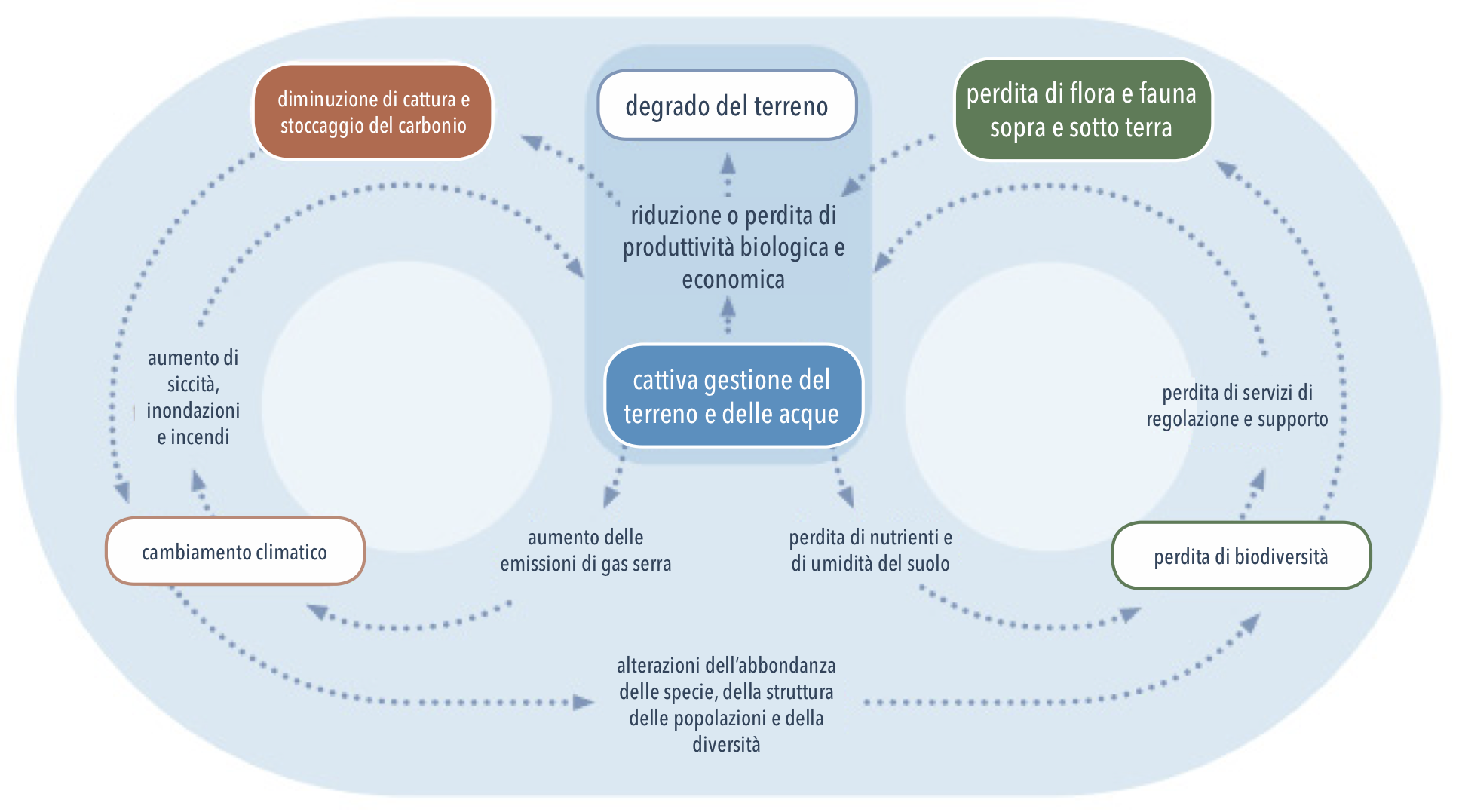 Figura 2 - Feedback loop tra degrado del suolo, cambiamento climatico e perdita di biodiversità